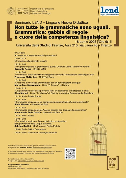 Giornata di formazione e confronto organizzata da Università degli Studi di Firenze e LEND - Lingua e Nuova Didattica