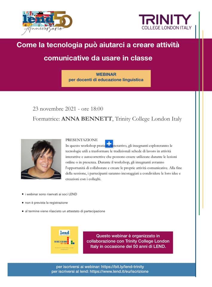 THE OPEN ROAD: A metaphor for LEND, a metaphor for English teaching. Il webinar è un omaggio a Lend e allo spirito di ricerca che contraddistingue l'associazione, ma anche un momento di riflessione sulle sfide per noi docenti di lingua straniera oggi, sulla nostra capacità di accoglierle e affrontarle come viaggiatori in una "open road"